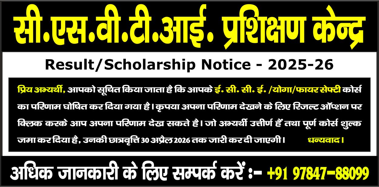 Central Vocational & Skill Training Institute is registered from Ministry of Corporate Affair, Trust Act 1862. We are providing computer and vocational courses all over India with the help of our Branch network in small towns and villages. Central Vocational & Skill Training Institute has also got CR from Ministry of HRD, Dept. of Higher Education, Govt. of India.
